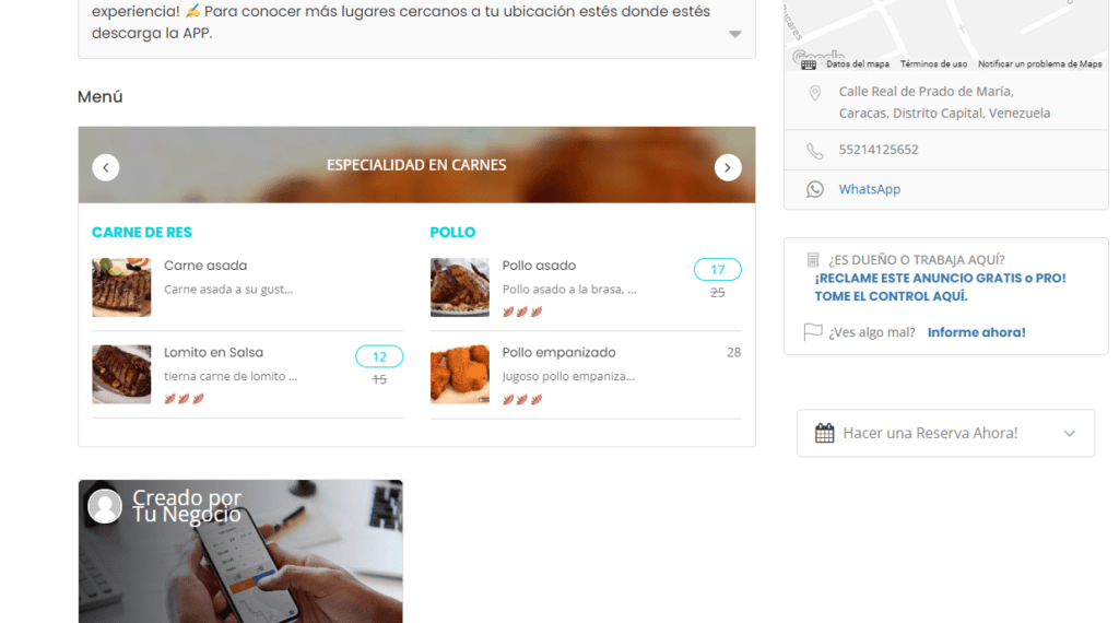Sabemos lo importante e imprescindible que su anuncio capte la atención de su público objetivo. Una estrategia efectiva es mostrar algunos productos o servicios llamativos. Por ejemplo, si dirige un restaurante, puede considerar mostrar el “menú” actual o platos exclusivos, junto con los precios y promociones relevantes. En el caso de otros tipos de negocios como tiendas de útiles escolares, venta de vehículos, repuestos, entre otros, sería apropiado destacar algunos de sus productos más vendidos. También puede consultar nuestro ejemplo ilustrativo visitando nuestra página en vivo. Ir al anuncio Es hora de enseñarte como crear un menú para tu restaurante o catálogo de algunos productos relevantes o servicios.